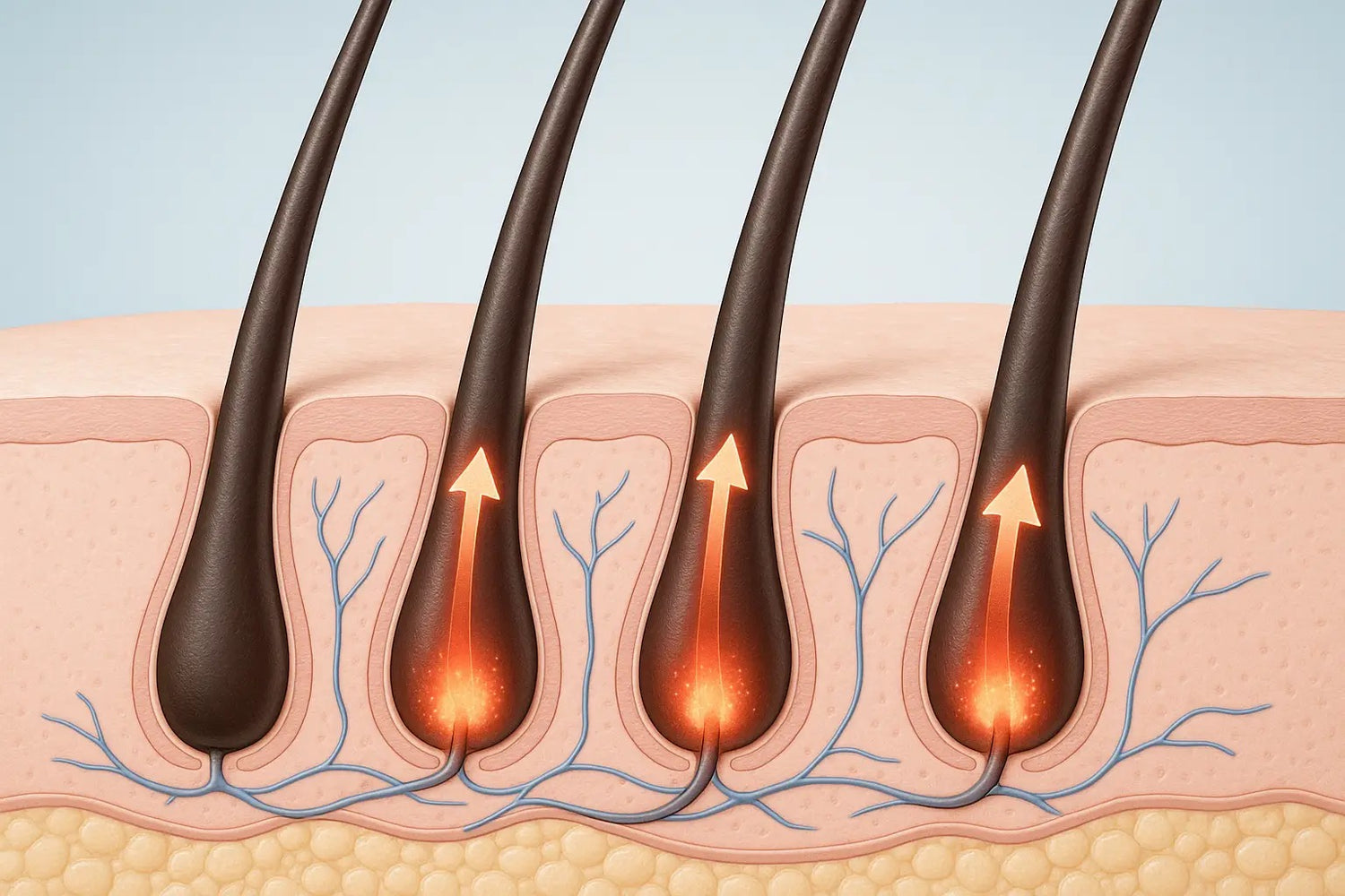 Activates Dormant Follicles: Boosts circulation to awaken resting follicles