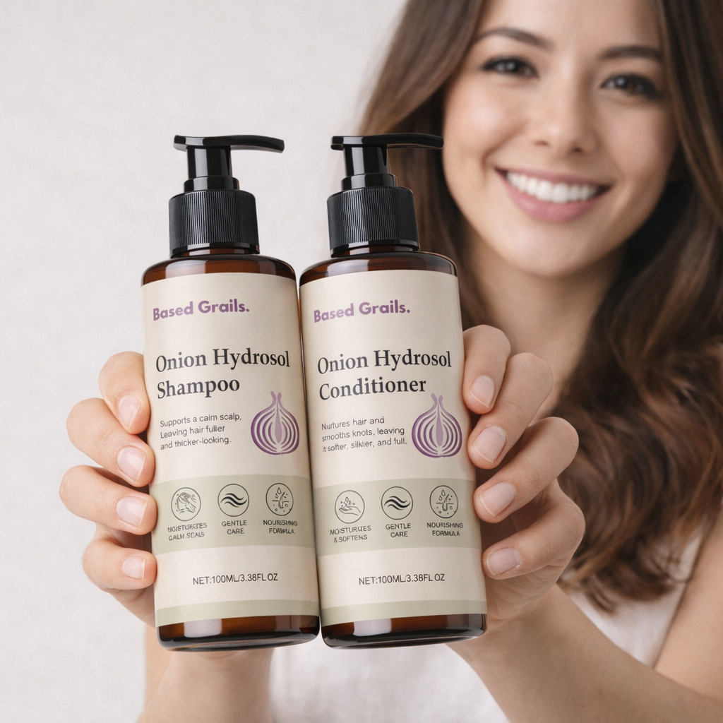 Your thinning hair isn’t gone forever, your follicles are just waiting for the nutrients they need. The Onion Hydrosol Shampoo & Conditioner Duo delivers concentrated sulfur and plant-based actives directly to your scalp, giving your hair what it needs to grow thicker, stronger, and healthier.