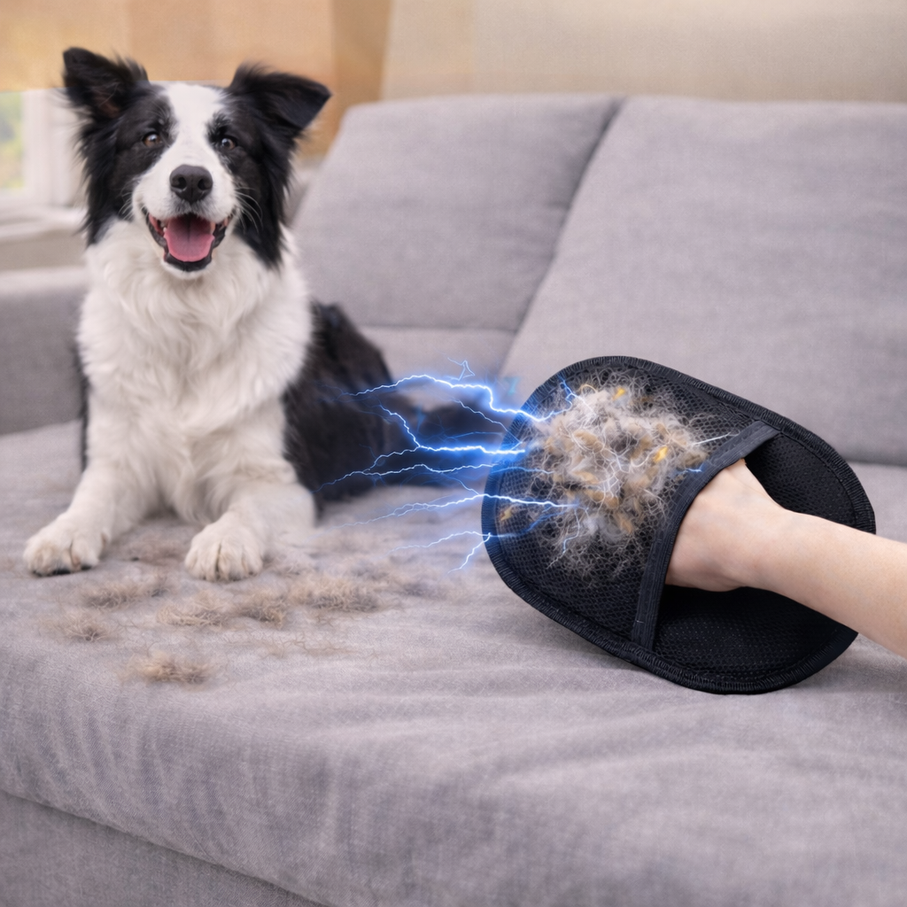 Say goodbye to stubborn pet hair with this innovative double-sided glove that uses static electricity to attract and trap fur effortlessly, keeping your home and clothes fur-free.